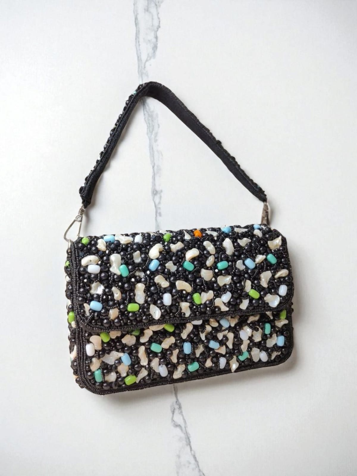 Stone and pearl clutch black